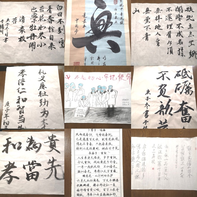本次书画展以"不忘初心,奋进新时代"为主题,为同学们搭建了一个展示自我风采,抒发爱国情怀,传承中华文化的舞台,于一张一弛之间,以笔锋传华夏情,凭墨香绘中国梦。此次作品展包含书法展及绘画展,共收集硬笔、软笔、绘画作品共计30余幅。