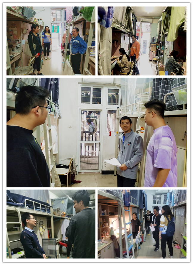 学院班子成员、班主任、辅导员分别深入学生宿舍,认真检查学生宿舍的环境卫生和设施情况,排查安全隐患,强调学生要和睦相处,防范宿舍安全隐患,禁止使用高功率电器和私拉电线,提高安全防范意识,做好疫情防控常态化各项防护措施。