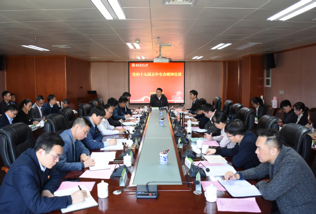 严金静深入讲解了党的十九届五中全会精神,重点讲解了我国决胜全面建成小康社会取得的十个方面决定性成就,“十四五”时期经济社会发展的指导思想和必须遵循的五大原则,到2035年基本实现社会主义现代化远景目标,习近平总书记关于《建议》的说明以及《建议》的主要内容、核心要义。强调要准确把握全面建成小康社会取得的决定性成就、中央对我国发展的重大判断、全会提出的目标任务,紧密团结在以习近平同志为核心的党中央周围,为夺取全面建设社会主义现代化国家新胜利不懈奋斗。