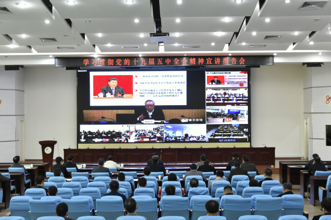 报告会上,林和平围绕习近平总书记在党的十九届五中全会上的重要讲话和全会审议通过的规划《建议》,系统阐述了习近平总书记关于谋划“十四五”时期我国发展的重要思想,我国进入新发展阶段的重大意义、有利条件和机遇挑战,2035远景目标和“十四五”时期我国发展的指导方针、主要目标、重点任务,构建新发展格局的战略构想和重要着力点等,强调要坚持党的全面领导,动员各方面力量为实现“十四五”规划和2035远景目标而团结奋斗,结合教育实际对全会精神进行了全面宣讲和深入讲解。