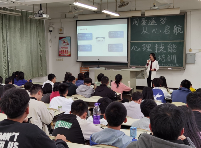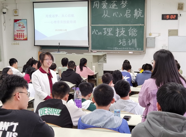为加强心理危机预防工作,引导大学生了解心理知识,提高班级心理委员的心理技能,11月28日上午,计算机与信息学院心理部于创新楼114教室开展了以“用爱逐梦,从心启航”为主题的心理技能培训讲座。本次讲座由资源与环境学院心理联络员林婉玲老师主讲,学院各班级心理委员参加了讲座。