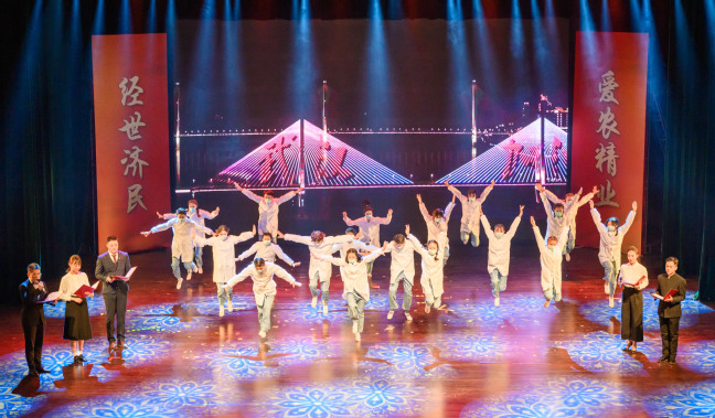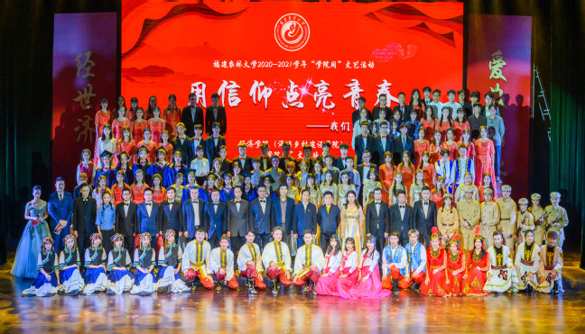 12月6日晚,经济学院“用信仰点亮青春——我们经院人的思政课”“学院周”文艺汇演在校大礼堂举行,标志着我校2020-2021学年“学院周”文艺活动正式开展。晚会分“青春的信念”“青春的担当”“青春的使命”三个篇章,以文艺作品创作和演出,唱响“践行新思想 奋进新时代”的昂扬旋律。校党委副书记庄祥生、曾华平,校纪委书记邱应龙、副校长林庆藩,各学院、机关部处负责人和经济学院师生一同观看了演出。此次文艺汇演开通网络直播,在校本部第一田径场同步播放。