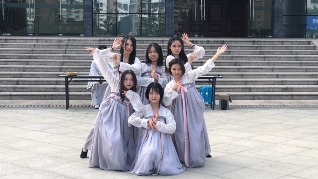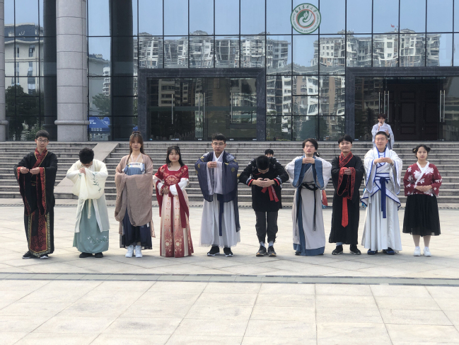 随后,来自2020级轻化工程2班团支部的10位同学分别着朱子深衣、短褐、齐腰襦裙等10种不同风格形制的汉服,逐一上场展示, 一连串行云流水般的动作赢得了全场同学们的阵阵掌声,也带来大家穿越“美学”,沉浸于华美的汉风气息之中。