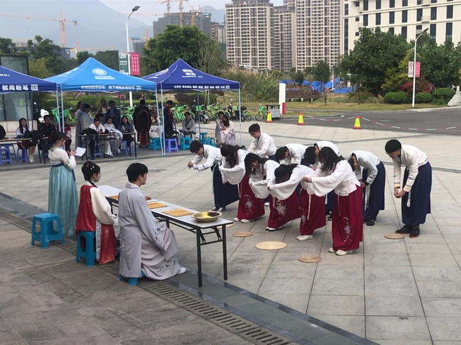 12月12日,材料工程学院、交通与土木工程学院联合在旗山校区大报告厅前举行“我们的华服日” 暨“入泮礼”演礼活动。新生辅导员、2020级新生代表100多人参加本次活动。