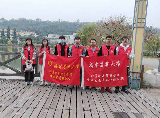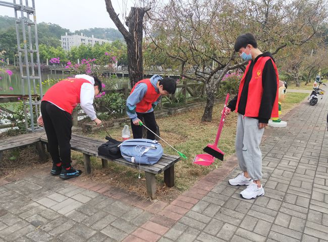 12月13日下午,计算机与信息学院绿伞志愿队在观音湖湿地公园开展校园清洁志愿服务活动。志愿者清理垃圾志愿者回收垃圾志愿者们整装待发,到达指定地点后以小组为单位,在负责人的引导下认真耐心地进行垃圾捡拾分类、清理回收工作。合影此次活动中,志愿者们用实际行动深入贯彻落实“绿水青山就是金山银山”的环保理念,弘扬了“奉献、友爱、互助、进步”的志愿服务精神,争做新时代优秀志愿者,为建设文明校园奉献了一份力量。