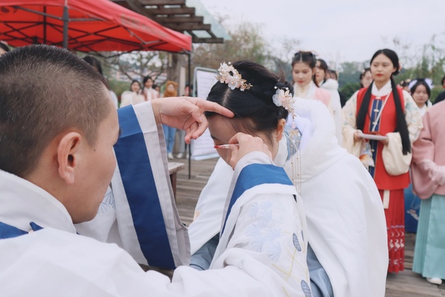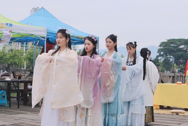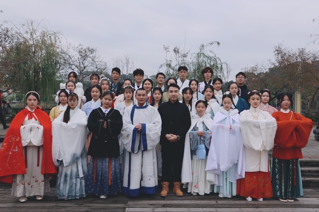 12月20日, 由校团委和图书馆主办,尔雅汉服文化协会、书法美术协会和南峰文学社承办的“明德尚学,尊师重道”入泮礼仪式在茶人码头举行。
