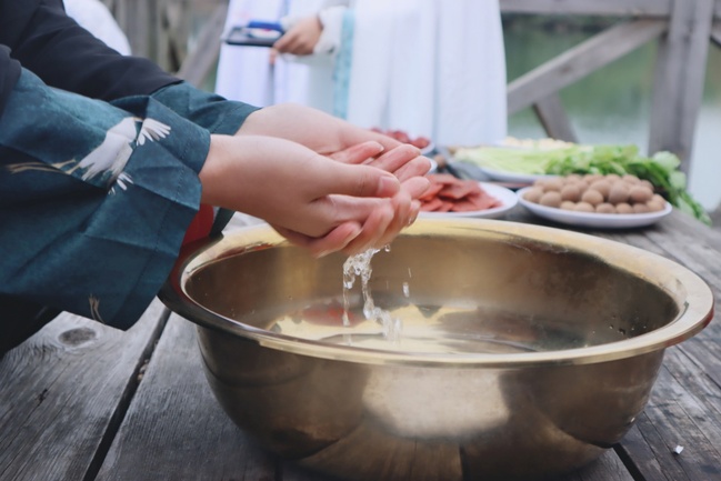 本次活动在典雅的舞蹈《礼仪之邦》中拉开帷幕,身着汉代服饰的同学们以观音湖为泮池,以春晖桥为壁桥,依次入泮池、拜孔子、诵论语并献六礼束脩,最后于庄重的击鼓声之中,净手净心,去杂存精。