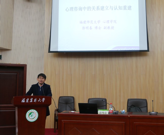 福建师范大学心理学院郭明春副教授应邀带来“心理咨询中的关系建立和认知重建”主题心理培训,围绕咨询师如何与来访者建立关系这一主题进行开展,介绍如何实现无条件积极关注、共情和真诚一致的心理咨询方法,介绍适用辅导员的认知行为疗法,为心理咨询提供科学的指导,同时进行角色扮演等,现场气氛热烈。