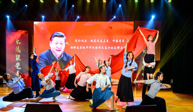 晚会在震撼人心、催人奋进的歌舞《重启》中拉开序幕。在第一篇章“青春韶华”中,民族舞《百花齐放春满园》展示了浓郁的民族风情和独特的民族文化,为现场观众带来了一场精彩的视觉盛宴;青年学子用独具地方特色的福建方言演绎了《福建声音》,带着师生们走进清新福建、领略魅力八闽;情景剧《走!到基层去!》原景再现了学院毕业选调生奋战在脱贫攻坚一线,带领村民全面建设小康社会的动人故事;活力四射、动感十足的街舞《青春追梦》,展现了学院学子敢于有梦、勇于追梦的青春激情和风采韶华。在第二篇章“立德树人”中,常立于三尺讲台的老师们在舞台上用书法和器乐《翰墨润志》,表达了学院教师秉承“四有”好老师标准,为党育人、为国育才的坚定决心;师生深情演唱《桃李情》,用动人的歌声、丰富的情感展现了学院美好和谐、师生融乐的情谊;原创音诗画《绽放的青春之花》充分彰显了学院研究生支教团用他们的青春和奉献、承诺和约定,为山区孩子们带来的梦想之花与成长之路;歌舞《我们的新时代》将晚会推向高潮,表达了艺园师生对中国特色社会主义进入新时代的深情礼赞,唱出了对国家繁荣富强,民族团结和谐的美好祝福。在第三篇章“复兴强国”中,武术《武动中华》展现了艺园学子们强健体魄、磨炼意志的体育精神;气势磅礴的朗诵《初心使命》弘扬了共产党员们不怕牺牲、砥砺奋斗的爱国主义精神和不忘初心、牢记使命的无私奉献精神;现代舞《薪火》演绎了代代相传的薪火燎原和奋斗精神,鼓励新一代青年接好历史接力棒,学生们用极具感染力和表达力的舞蹈赢得了在场师生的阵阵掌声。晚会在师生大合唱《歌唱祖国》《走向复兴》中落下帷幕,诠释了学院师生在新时代书写历史、勇担重任的坚定信念。