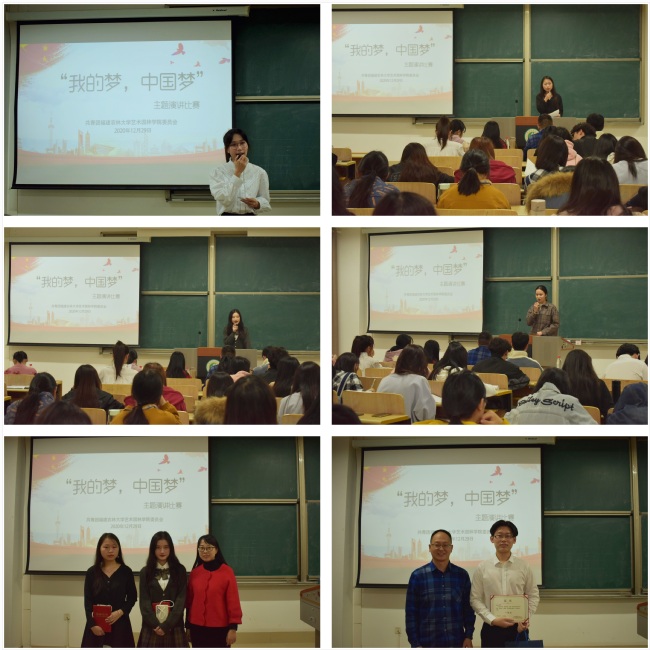 12月29日,艺术学院园林学院于旗教205室开展“我的梦,中国梦”主题演讲比赛。经过初赛选拔,共有11名同学进入决赛。比赛邀请旗山校区团学工作办公室副主任方万春,院团委书记秦奋,院团总支郭馨茹、谷灿担任评委。