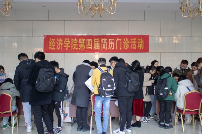 12月31日下午,经济学院于博学报告厅一楼举办第四届简历门诊活动。“各有所职”平台就业导师陆宋权、杨赛华、范应孙应邀参加,经济学院2021届本科生、研究生参加活动。