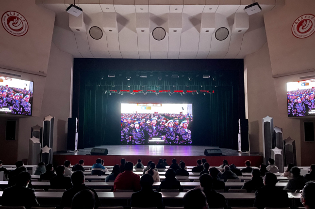 该影片是我国首部海外维和战地纪实电影,取材于中国赴南苏丹维和步兵营全体官兵亲历记录,历经五年跟踪拍摄,横跨中国和非洲大陆,真实展现了我国第一支成建制维和步兵营,在南苏丹执行维和任务期间,在战火纷飞中保护当地难民营安全的故事。电影中所展示的维和步兵营主体是从“杨根思部队”抽调组成,“杨根思部队”是从抗美援朝时期就立下赫赫战功的英雄部队。在观影过程中,广大师生被影片中令人震撼的情节吸引,被维和战士们甘于奉献、勇于牺牲、守护和平的崇高精神深深打动,纷纷致敬这群最可爱的人。