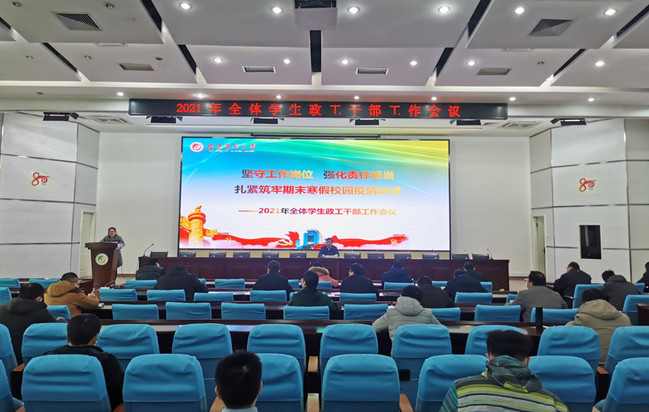 会议充分肯定了过去的一年来全体政工干部在落实立德树人根本任务、统筹推进疫情防控和学生思想政治工作方面所做的努力和所取得的成效,通报并分析研判了近期校园疫情防控工作存在的突出问题和薄弱环节,强调要坚持问题导向,以更大责任担当,不折不扣抓好各项工作落实,扎牢扎密扎实期末寒假校园疫情防护网,坚决守住学生生命健康和校园安全稳定的底线。