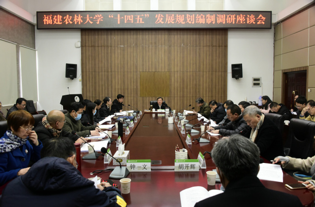 近期,校长兰思仁主持召开两场“十四五”发展规划专题调研座谈会,围绕“一流大学和一流学科建设”调研主题,面向学校一级学科带头人、学院教授委员会主任、专家代表和部分学院院长广泛征求意见建议。副校长黄炎和、郑宝东和相关职能部门负责人分别出席会议。