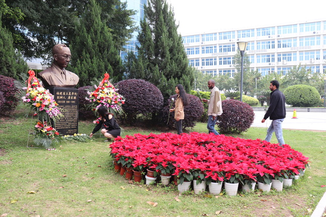 4月4日上午,国际学院中外师生代表怀着崇敬的心情,来到严家显先生铜像前,郑重举行向严家显先生铜像敬献鲜花仪式,深切缅怀严家显先生,深情回顾严家显先生创立省立农学院那段艰苦卓绝的奋斗历史及其为福建高等农业教育事业做出的历史贡献。