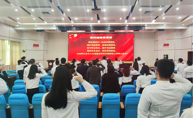 开班式上举行了辅导员宣誓仪式,全体新老辅导员面对《高校辅导员誓词》庄严宣誓入职或重温誓词,表达了献身党的教育事业、情系学生成长、矢志立德树人的信念和决心。曾华平现场监誓,并代表学校对新近入职的辅导员表示问候和欢迎,勉励大家要找准自身定位、促进职业发展。曾华平强调,要坚定理想信念,自觉做践行新思想的奋斗者;要加快融入角色,始终做学生成长成才的引导者;要勇于担当作为,积极做学校事业发展的推动者;要不断提升自我,争做党和人民满意的教育者。