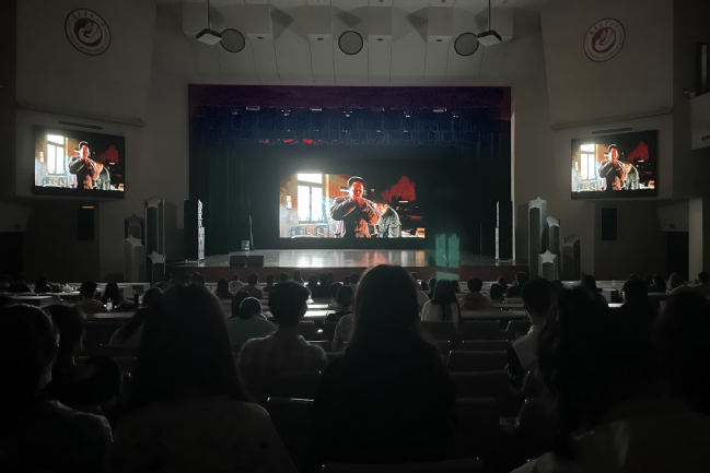 4月16日晚,我校于金山校区大礼堂展播党史学习教育电影《建国大业》,近三百余名学生参加观看。