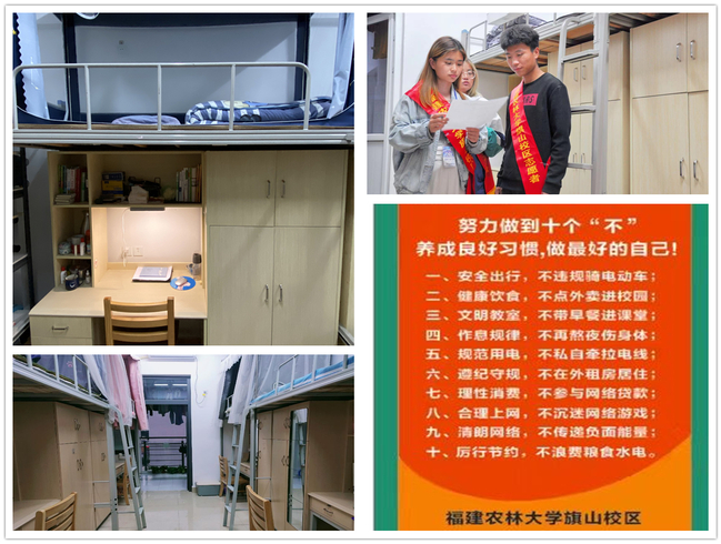 为进一步深入开展新时代文明农林大人“十不”系列活动,加强校区学生宿舍管理,教育引导学生在宿舍作息规律、规范用电、遵纪守规和合理上网。4月20日下午,旗山校区开展校区“文明宿舍,你我共创”宿舍卫生安全检查活动。