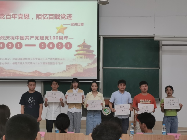 为了纪念中国共产党建立100周年、重温党的光辉历程、歌颂党的伟大成就,动员广大青年学子讲好党史故事、传承红色基因、彰显青年担当。4月24日晚上,交通与土木工程学院在旗山校区100教室举行了“阡念百年党恩,陌忆百载党迹”的主题宣讲比赛。