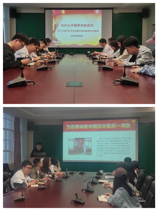 会议认真学习了习近平总书记于4月25日上午在广西桂林市全州县的红军长征湘江战役纪念园谈湘江战役时发表的重要讲话精神,并结合党史学习教育,认真学习讨论湘江战役的历史背景和历史意义。