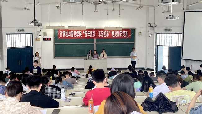 4月23日至26日,计算机与信息学院举办了以“百年复兴,不忘初心”为主题的党史知识竞赛。活动共有23支研究生队伍和22支本科生队伍。