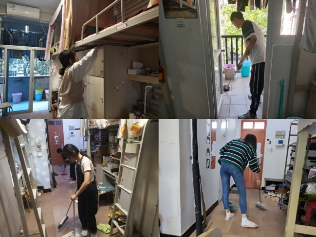 活动中,学院学生拿起扫把、拖把和抹布等劳动工具,进行了宿舍卫生大扫除,营造整洁有序的学习与生活环境。