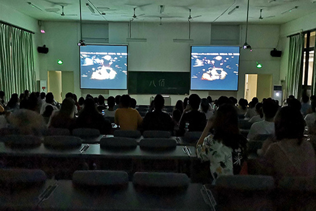 4月30日晚,安溪茶学院在教学楼开展本学期第四场“电影周”活动,200多名学子共同观看了爱国主题教育电影《八佰》。