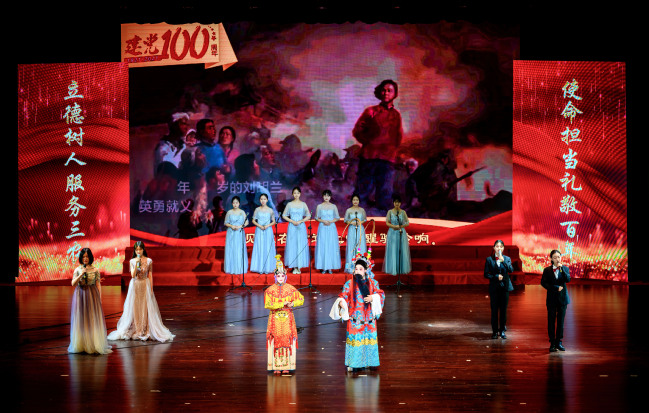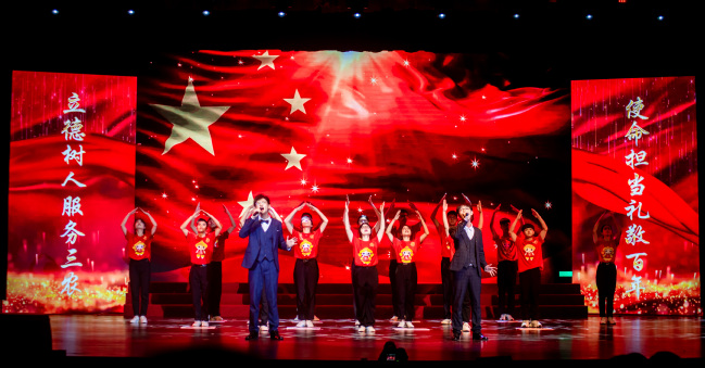 此次晚会分为“守正笃实·践行使命守初心”“久久为功·服务三农育新人”“行稳致远·礼敬百年建新功”三个篇章。晚会在充满激情与活力的开场舞《大地的节拍》中拉开序幕,合唱《我宣誓》庄严而富有气势地唱出了入党誓言,表达了中国共产党人对初心的坚守及对党和国家的深沉热爱;京剧《中国脊梁》通过歌曲向时代英雄致敬;手势语歌曲《国家》用手势传递了对国家的真挚热爱;情景舞蹈《我们的故事》描绘了在学校和学院的发展历程中,农学人跟随中国共产党,融入时代发展、社会建设的足迹;老师们的小组唱《教师之歌》唱出了农学院教师立德树人的铮铮誓言,呈现了服务三农育新人的信心和决心;情景诗朗诵《风吹雨打不回头,此生原是拓荒牛——纪念周可涌先生》展现了周可涌先生深厚的知识底蕴、严谨的治学态度、高尚的道德品质,以身作则影响学生、感染学生、教育学生;舞蹈《耕耘》用优美的舞蹈描绘了农学人的坚持、执着和热爱;话剧《追梦新农人》呈现了农学院师生勇担责任,服务基层、奉献社会,投身实现伟大中国梦的历史洪流;武术《武动青春》在一张一弛之间展示中华武术的精魄;歌曲串烧《流金岁月·奋斗不止》唱出了不同时代农学人奋斗不止的可贵精神;最后,师生合唱团演唱的《我们走在大路上》,激昂的歌声感染了全场观众,集体起立高亢齐唱把晚会推向高潮。