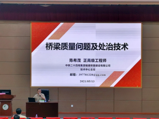 5月13日下午,交通与土木工程学院在旗山校区小报告厅举行本学期第四次阡陌学堂学术讲座。活动特别邀请中铁二十四局集团福建铁路建设有限公司技术中心主任陈希茂为广大师生讲解主题为“桥梁质量问题及处治技术”的学术讲座。