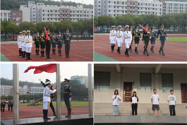 英姿飒爽的国旗护卫队庄严出旗,他们动作整齐划一,步伐坚定,国旗在气势磅礴的国歌声中缓缓升起,迎风飘扬。全体人员肃立,向国旗行注目礼,向伟大祖国致以崇高的敬意和美好的祝福。
