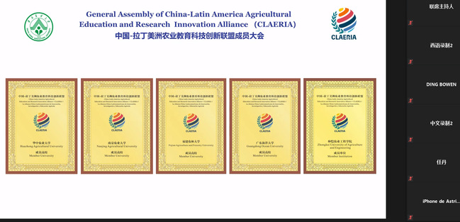 5月18日上午,学校通过网络参加了中拉农业科创联盟首届成员线上大会。校长兰思仁、国际处相关人员参加了本次会议。