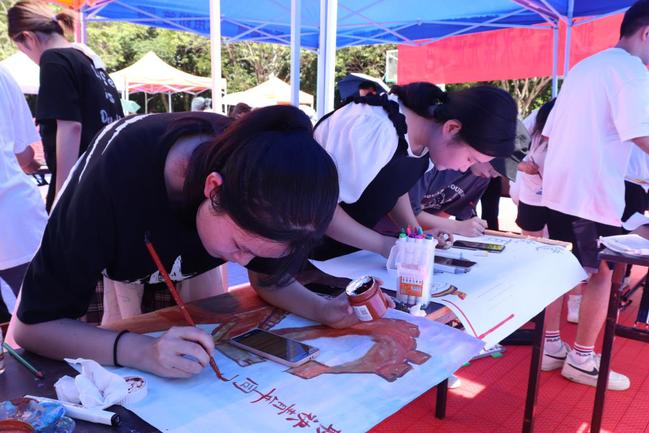 活动以“联袂青年同习百年党史,延承信念永葆先进本色”为主题,分为现场绘画、摆点讲解及互动游戏等环节。在现场绘画区,各班绘画能手充分利用自己对主题的理解进行构思创作,把对党的浓厚情怀凝聚笔端,绘制出一幅幅技艺精湛的书画作品。随后,各班解说员采用多种形式,向评委和参观群众讲解本班作品内容,展示班级风采。最后,20级食科二班,20级卫一班,20级食卫二班分别获得本次现场绘画一、二、三等奖,20级食科二班获得了本次活动的最佳组织奖。