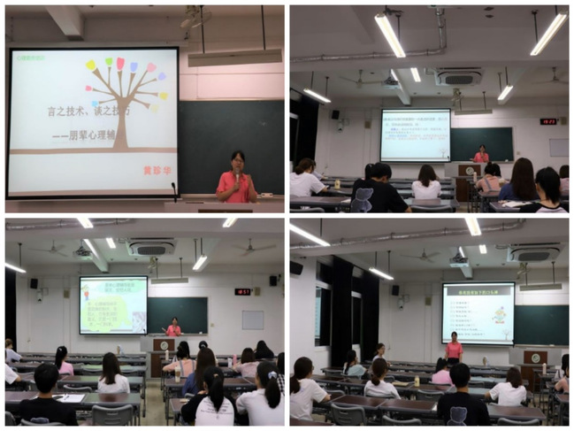 培训讲座上,黄珍华为大家讲解了朋辈心理辅导的含义与特点、朋辈心理辅导的现实意义,并结合实例,详细介绍心理谈话艺术和技巧,并重点讲述了朋辈心理辅导的若干要素,并勉励大家多关心和帮助身边同学,协助老师做好同学们的心理疏导、心理危机干预工作,让朋辈心理辅导成为友谊中的纽带。