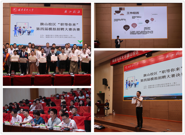 决赛分个人职位认知、压力面试两个环节对入围选手进行考核。在职位认知阶段,选手们阐述个人职业生涯规划,并展示与应聘岗位相匹配的职业素养。在压力面试环节,评委根据选手的简历和应聘岗位提问,考验选手的专业素养、临场发挥和随机应变的能力。在经过激烈的角逐后,2018级环境设计专业林衍漪获得一等奖,2019级艺术设计专硕张倩楠获得二等奖,2017级材料科学与工程严家显创新班胡清鉴、2020级风景园林学学硕梁裕宁获得三等奖,2018级木材科学与工程专业吴丽婷、2018级森林工程专业林艳欣、2018级工程管理专业许嘉盈、2019级木材料科学与工程专业苏成获得优秀奖。