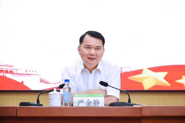 严金静希望广大青年学子要立足新的历史方位,胸怀中华民族伟大复兴的战略全局和世界百年未有之大变局,深刻认识我国社会主要矛盾变化带来的新特征新要求,深刻认识错综复杂的国际环境带来的新矛盾新挑战,深刻认识“十四五”时期我国将进入新发展阶段的重大判断,强化当代青年的责任与担当,切实将掌握的基本理论和方法运用在实践中,奋勇前进,为全面建设社会主义现代化国家贡献智慧力量。