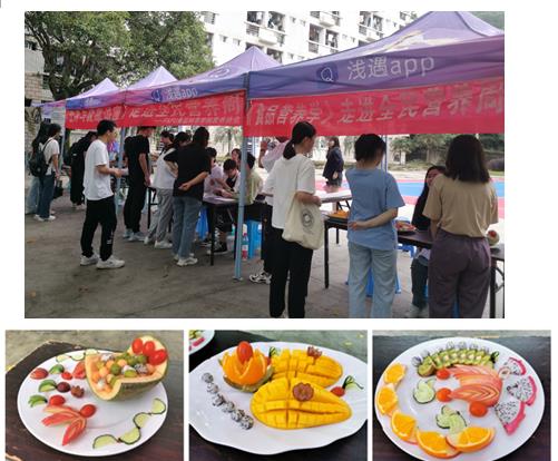 开展摆点宣传。5月22日上午,校大学生营养与健康协会联合烹饪协会、果雕协会在南区篮球场进行摆点宣传。活动现场设置签到奖品区、游戏区和品尝区。游戏区准备了丰富多样的合理膳食小游戏,如搭配三餐、膳食宝塔、水果游戏等,紧锣密鼓的游戏环节既趣味盎然又兼具科普娱乐功能;品尝区的鲜果雕刻造型精美、颜色鲜艳,既夺人眼球又香甜可口。活动受到了同学们的热烈欢迎。