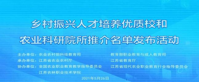 5月26日,农业农村部、教育部发布了《农业农村部办公厅 教育部办公厅关于公布乡村振兴人才培养优质校和农业科研院所拟推介名单的通知》(农办科[2021]14号)文件,我校入选全国乡村振兴人才培养优质校名单。