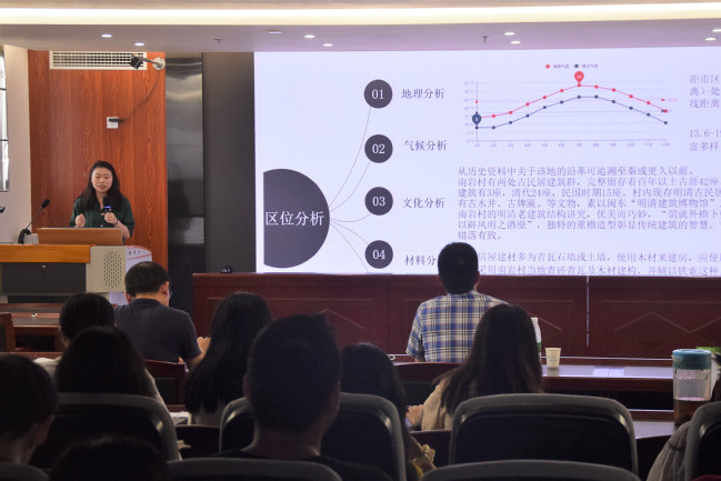 竞赛以南岩村的田野、山林、古宅为底图,以“村趣”为主题进行设计与建造,探讨人与自然、环境的关系,思考传统乡村与当代城市、未来生活方式的关联。通过前期筛选,共有七支队伍进入此次决赛。赛事现场,各支队伍依次上台详细介绍各自的设计作品,向评委和观众展示了精妙的设计趣味、唯美的设计理念,以及实用的设计规划。最终,作品《童年——基于南岩村乡村建筑文化下的构筑物设计》获得大赛一等奖,将在完善改进后代表我校前往宁德福安市南岩村进行实地建构。此外,大赛还评出二等奖作品3个,三等奖作品3个。