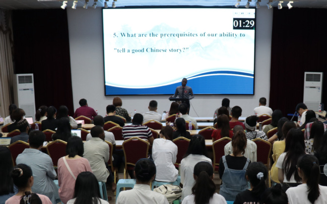 为庆祝建党100周年,传承和弘扬中华优秀传统文化,增强当代大学生的文化自信和民族自豪感,5月28日晚,国际学院在校大学生活动中心多功能厅举办第二届“用英语讲中国故事”开元kaiyuan(中国)选拔赛。国际学院院长吴锦程、新航道国际教育集团福州分公司市场总监邓文强、外语系副主任姚静及来自各学院的100多名中外师生参加本次活动。
