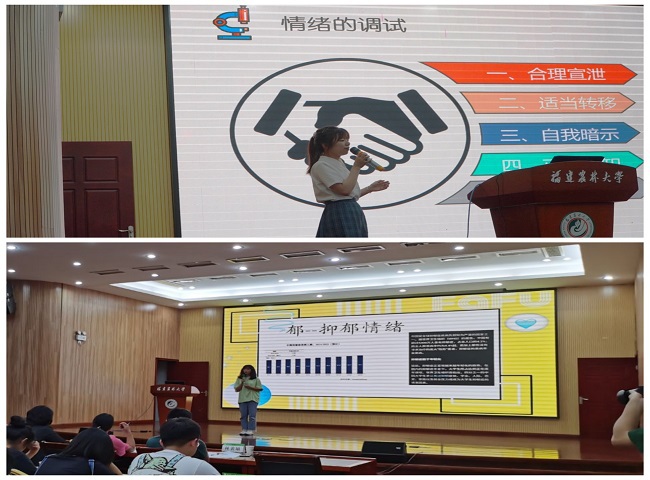 本次比赛分为初赛和决赛两个环节,分为本科生组与研究生组。初赛后每组各有9位选手进入决赛。选手按抽签顺序依次上台展示PPT,通过授课的形式对大学生不良情绪、恋爱问题、挫折压力等方面进行了讲解并提出解决问题的方法,展示了自身理论知识水平和实践能力。赛后,林黄敏对选手们的现场表现做了点评,指出选手们要选择合适的主题范围,在有限的讲课时间里抓住重点并进行清晰、有针对性的探讨。