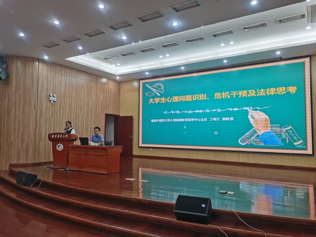 为进一步提升我校政工干部心理健康教育工作系统化、规范化和专业化水平,6月8日上午,由校大学生心理健康指导中心主办、农学院承办的2021年政工干部心理技能培训第三讲《大学生心理问题识别、危机干预及法律思考》在常盛会议中心举办,培训邀请丁闽江副教授主讲,全体政工干部、部分班主任和研究生导师参加。