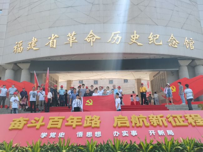 入馆前,全体党员面向鲜红的党旗,坚定地举起右拳,重温入党誓词,表达了不忘初心、牢记使命,为党的事业奋斗终身的决心。随后,大家在讲解员引导下,走进“红色福建”主题展,参观学习了“饱经忧患不屈抗争”“国共合作唤醒工农”“土地革命创建苏区”“浴血长征三年奋斗”“团结御侮奋勇抗敌”“壮大力量迎接解放”六大展区,通过观看实物展品、视频、图片等多种形式,重温中国共产党从无到有、由弱到强,从胜利不断走向胜利的波澜壮阔的百年辉煌历程;深入了解福建自1840年鸦片战争到1949年新中国成立期间的百年历史风云。
