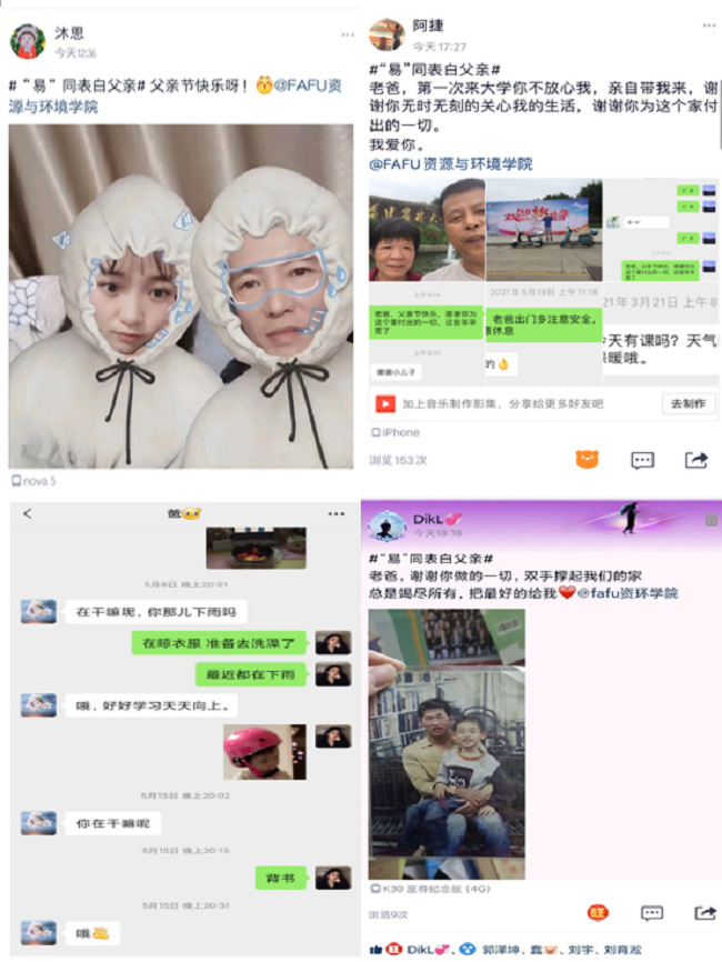 6月20日,在父亲节来临之际,资源与环境学院组织开展“‘易’同表白父亲”主题照片故事征集活动。
