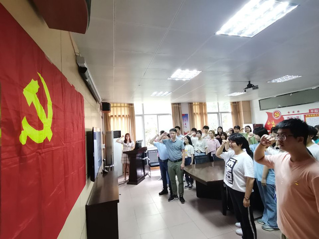 6月26日,在建党百年来临之际,资源与环境学院党委组织师生党员开展“喜迎建党百年重温入党誓词”主题活动。资源与环境学院党委书记童庆满、副书记修新田、党委秘书杨莹、政工干部、师生党员代表等参加活动。