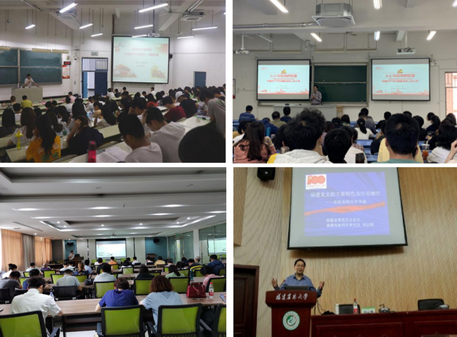 举办党史专题讲座。除学院党政领导班子外,学院还特别邀请福建省新四军研究会会长刘云刚、马克思主义学院陈文老师等主讲以“百年辉煌历史”“福建党史的主要特色及历史地位” “中国共产党在隐蔽战线上的斗争”等为主题的党史教育专题讲座。每场党课深入浅出、内涵丰富,对学院师生党员加强党的历史和思想政治理论学习,进一步提高政治素养,具有很强的理论指导作用,同时,引导师生党员进一步加强党史学习,牢记历史、传承红色基因,立足岗位做贡献,攻坚克难促发展,以更加饱满的热情投身学习工作中,为实现中华民族伟大复兴的中国梦奋勇拼搏。