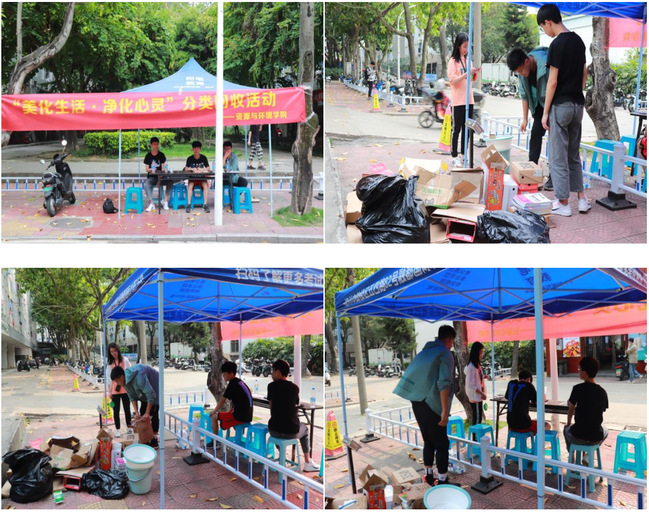 开展废品回收活动。学院在宿舍区域组织开展“美化生活·净化心灵”废品分类回收活动。活动中,同学们用生活中积累下来的可回收垃圾兑换相应的积分。活动共回收了纸质废品近300公斤,金属废品200余公斤,废塑料100余公斤。所有回收的废品售给专业正规的废品回收站或公司,出售废品的收入将全部用于学院生态环保活动开展。活动的开展促进同学们养成垃圾回收、勤俭节约的习惯,提高同学们资源循环利用和生态环保意识,引导同学们对环境保护事业的关注,影响并带动更多的人加入到环保事业的绿色接力中去,不断传承和发扬校园绿色文化。