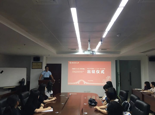 7月5日下午,交通与土木工程学院2021年大学生暑期“三下乡”社会实践出征仪式在旗山校区501会议室开展。学院党委副书记焦廷伟,各支实践队带队老师、队长、安全员等参加此次活动,活动由学院团委书记柯祥德主持。