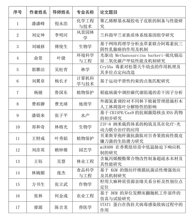 我校获得2020年福建省优秀学术硕士学位论文名单