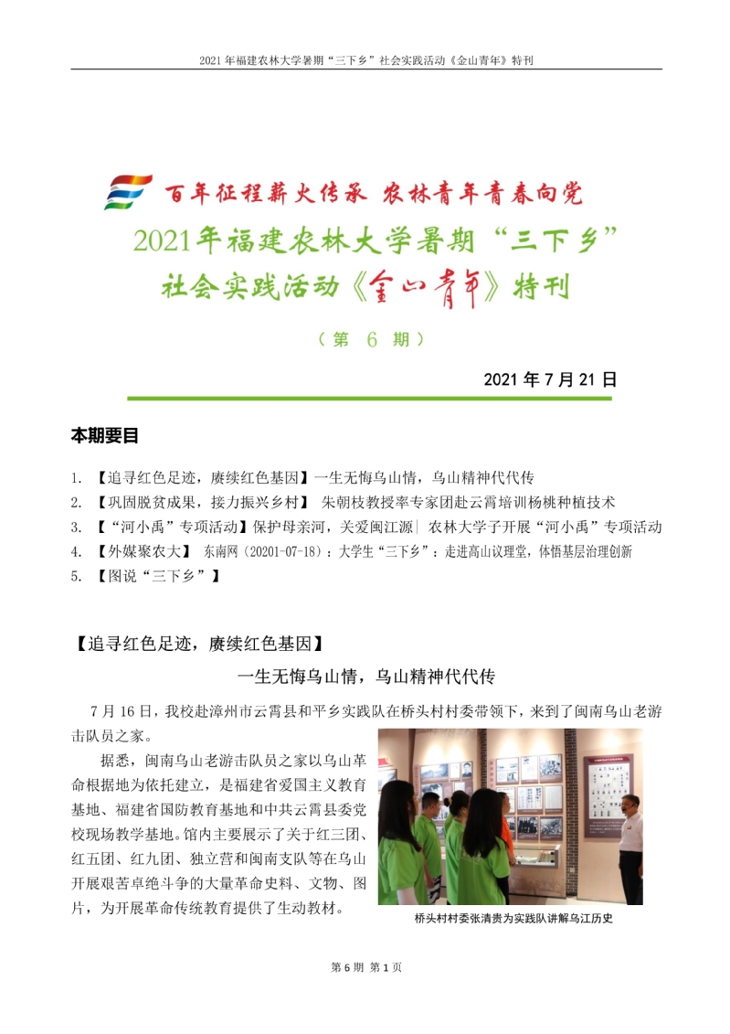 2021年开元kaiyuan(中国)暑期“三下乡”社会实践活动《金山青年》特刊第六期