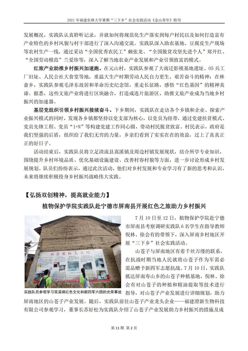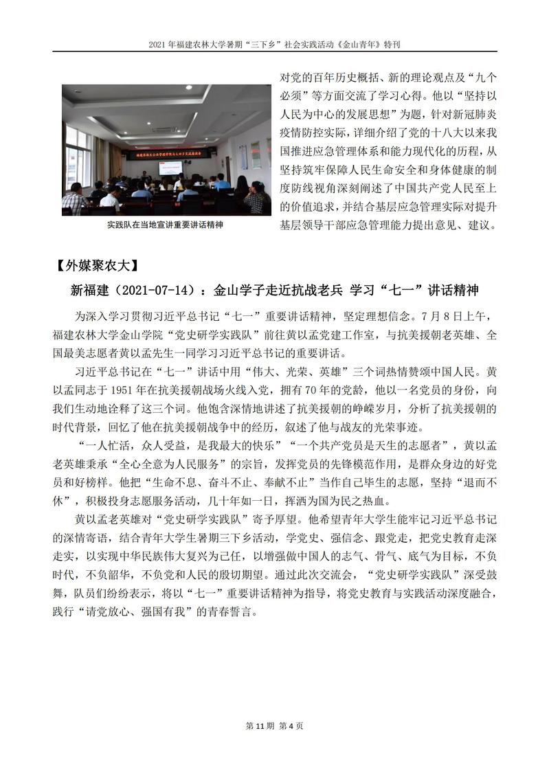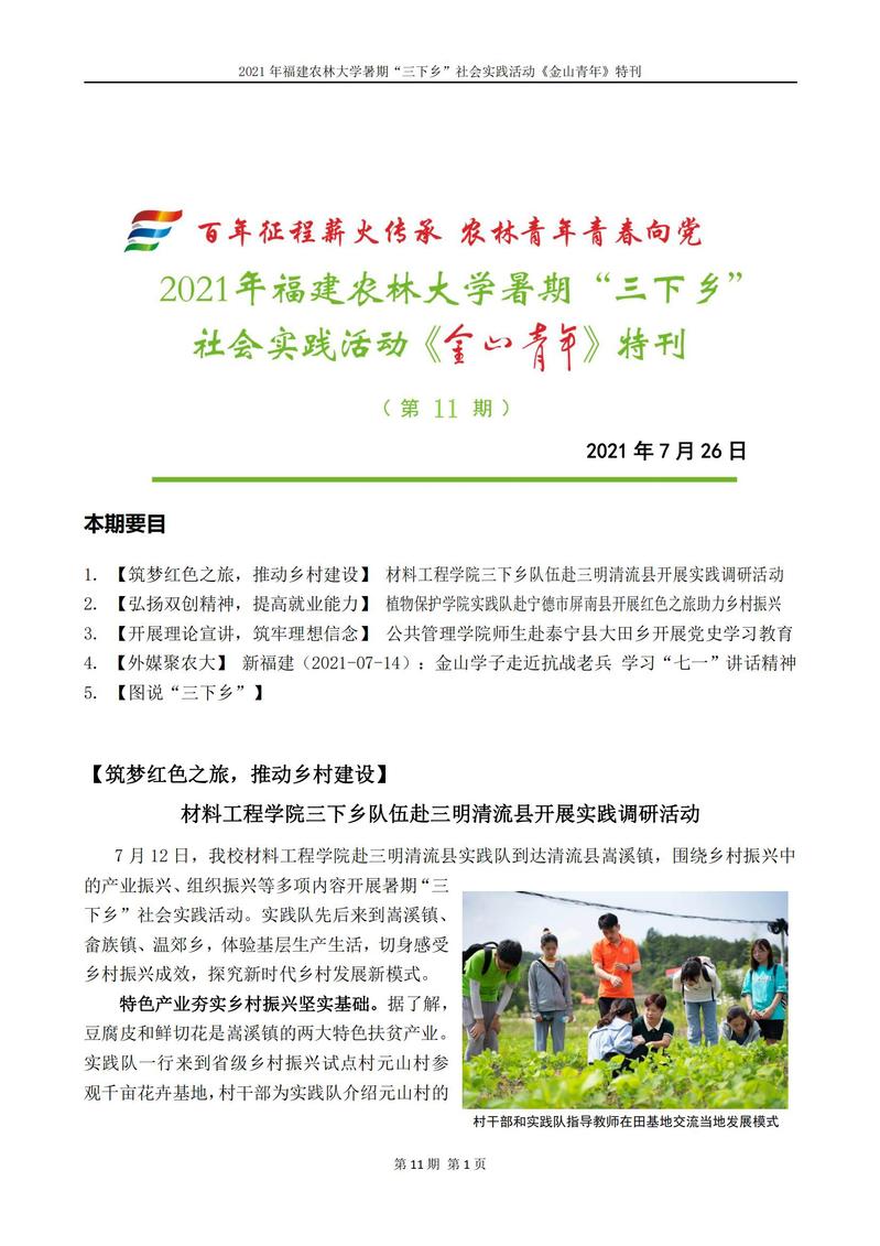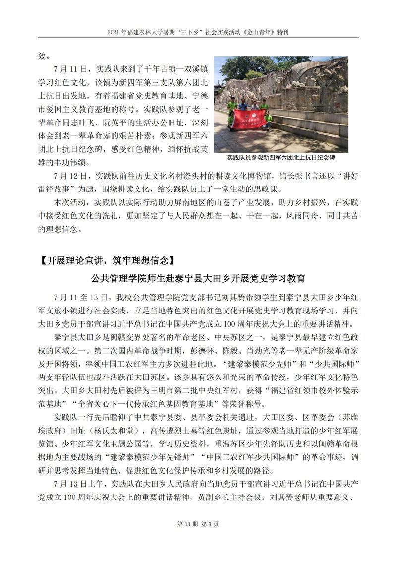 2021年开元kaiyuan(中国)暑期“三下乡”社会实践活动《金山青年》特刊第十一期
